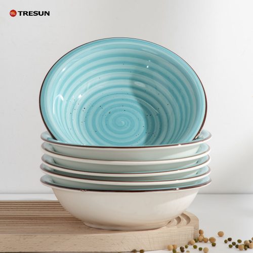 Cheap Price 8.25 Inch Large Blue Strip Handpaint Stoneware Cereal Soup Bowl