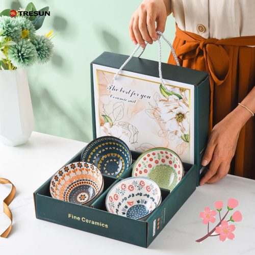 Colorful Printed Cheap Japanese Style Korean 4.5 Inch Mini Small Gift Box Set Rice Porcelain Ceramic Bowl Set for Restaurant