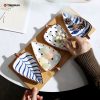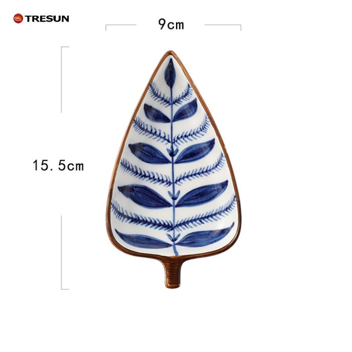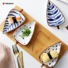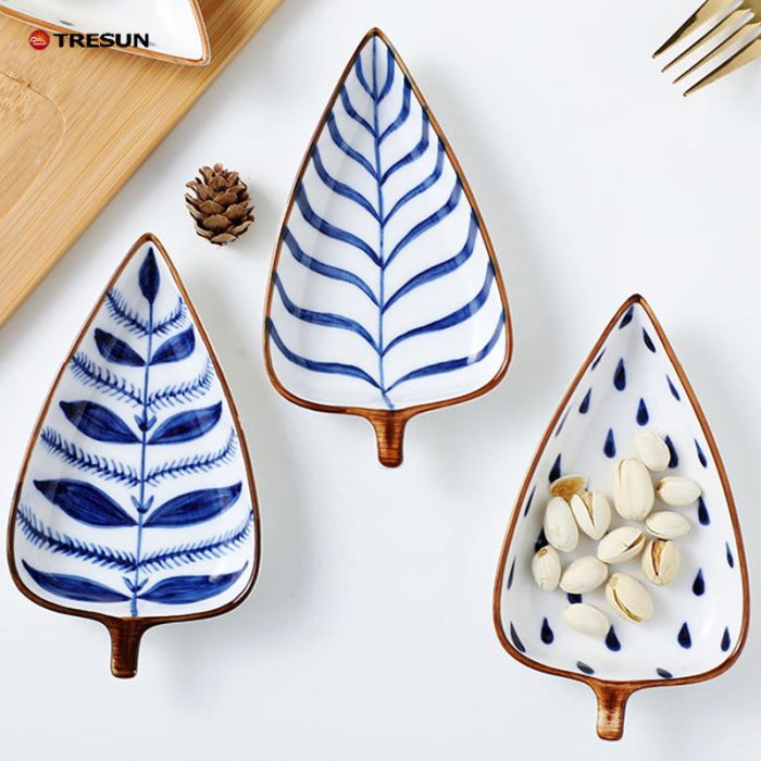 Leaf Shaped Hand Painted Snacks Appetizer Fruit Candy Nuts Cheese Dips Dish Ceramic Platter Set of 4 With Wooden Bamboo Tray