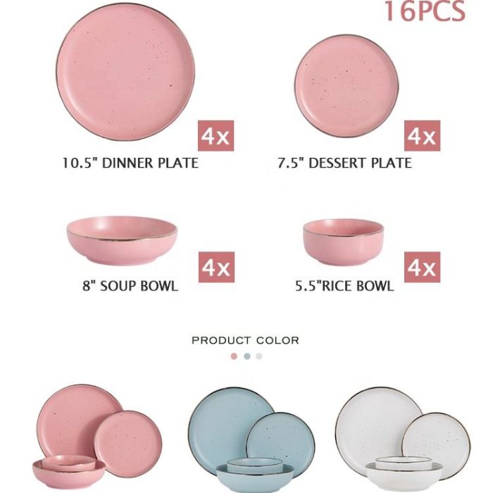 Luxury Vajillas 16 Piece Pcs Ceramic Plates Bowls Modern Ceramic Microwave Dishwasher Safe Matte Stoneware Dinnerware Set of 4