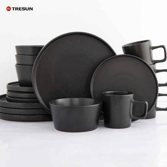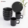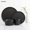 Nordic Breakfast Set 16 Pcs Matte Black Serving Plates Restaurant Luxury Stoneware Tableware Ceramic Dinnerware Set with Mug