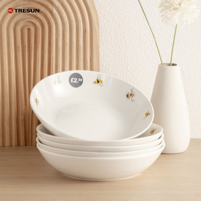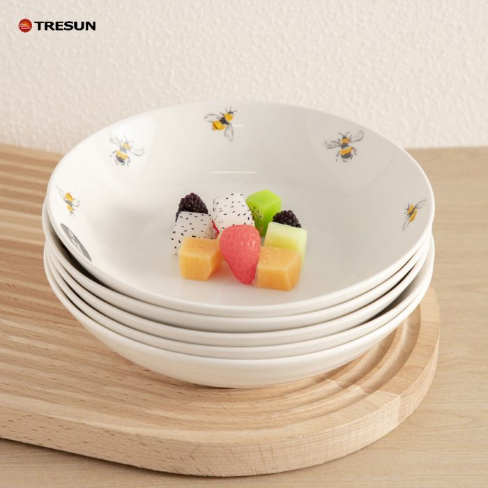 Nordic Style Ceramic Porcelain White Bee Pattern Party Salad Fruit Snack Mixing Cereal Pasta Food Serving Bowl